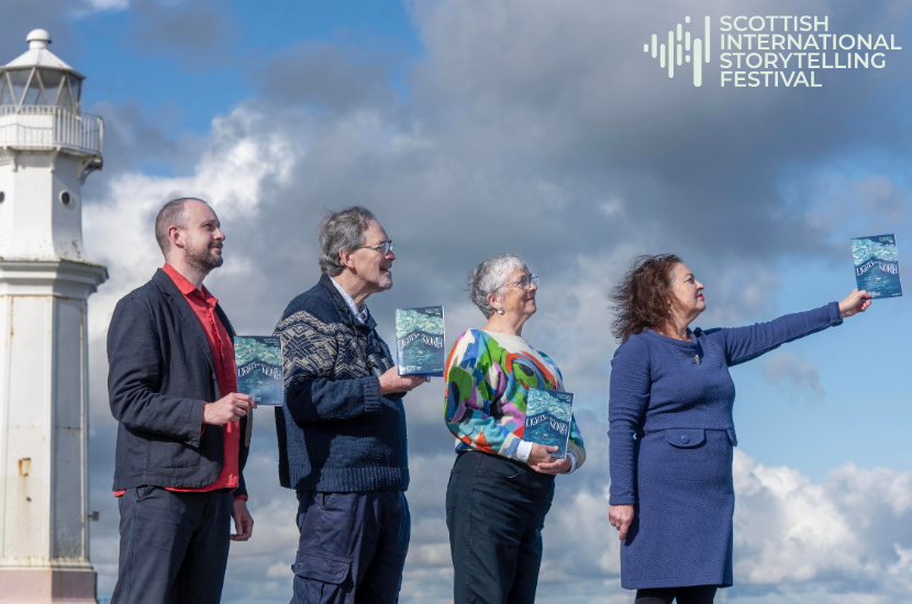 Lights of the North – L/R Associate Director Daniel Abercrombie, Director of the Scottish International Storytelling Festival Donald Smith, storyteller Jan Bee Brown and storyteller and musician Marion Kenny at Newhaven Lighthouse in Edinburgh. Photo credit Neil Hanna